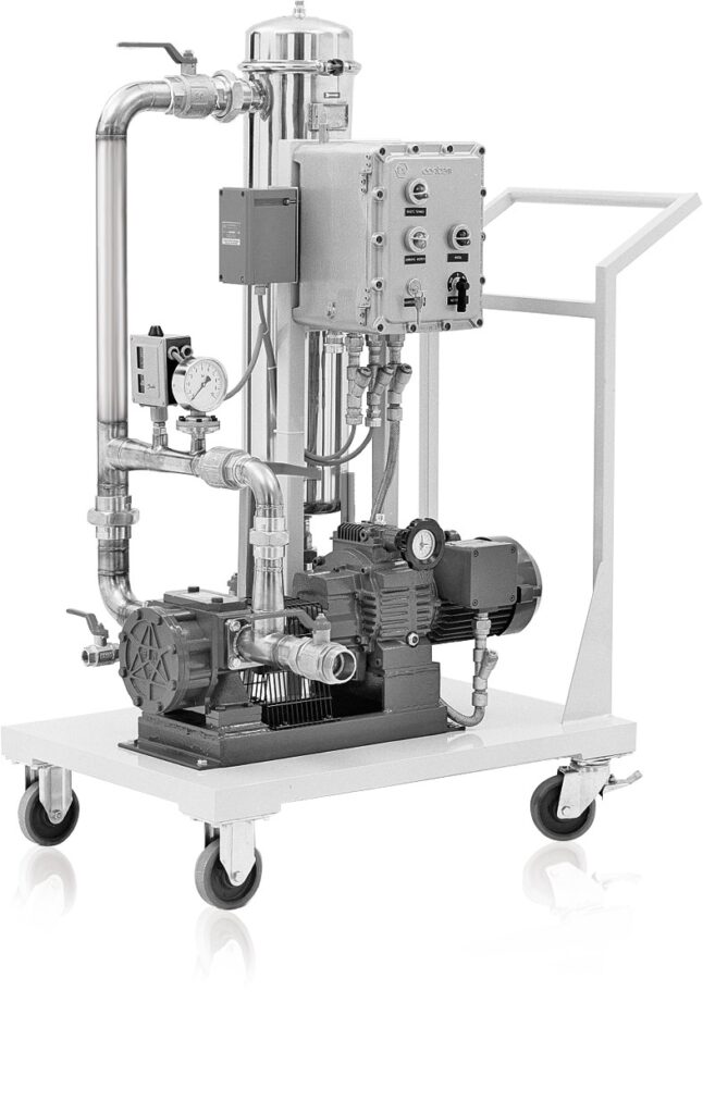 - Équipé d’une pompe électrique ou à air comprimé à membrane
